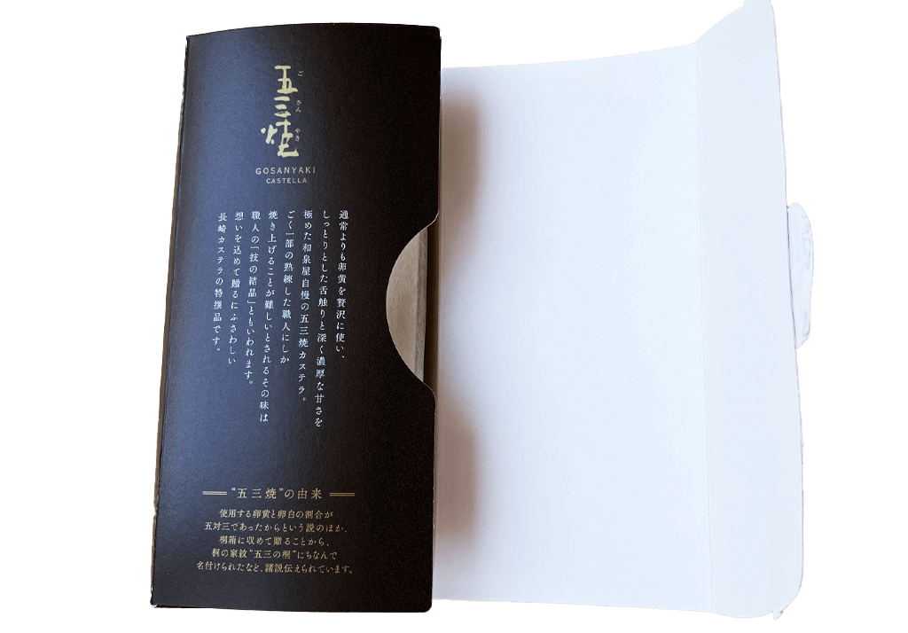 1956年創業の長崎カステラ等を作っているお店で五三焼の他にも和三盆、チョコやチーズ、抹茶など、様々なカステラを扱っています。カステララスクやチョコでコーティングされた「長崎しよこらあと」などのカステラスイーツは、伝統と新しさを感じます。